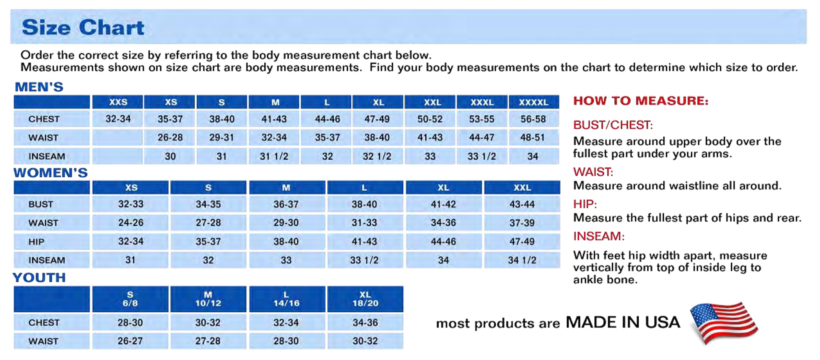 | Waist | 26-28 | 29-31 | 32-34 | 35-37 | 38-40 | 41-43 | 44-47 | 48-51 |